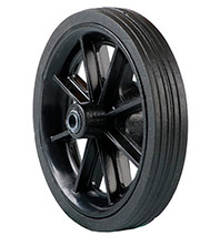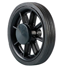 Колесо литое 135-24/8-50 для тележек. Состоит из пластикового обода , шинки из пластиката шириной 24 мм, износостойкой полиамидной втулки скольжения внутренним диаметром 8 мм. и цветной крышки, закрывающей ось.Колеса устанавливаются на тележку грузоподьёмностью 25-40 кг.