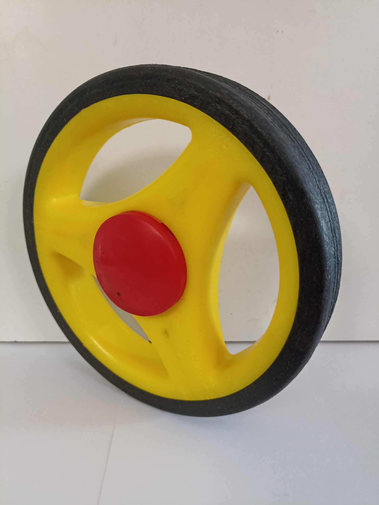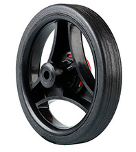Колесо литое 165-29/10-49 для тележек. Состоит из пластикового обода, шинки из пластиката шириной 29 мм, износостойкой полиамидной втулки скольжения диаметром 10 мм. и цветной крышки, закрывающей ось. Колеса устанавливаются на тележку грузоподьёмностью 30-50 кг.