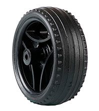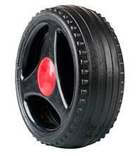 Колесо литое 165-65/10-78 для тележек. Состоит из пластикового обода, шинки из пластиката шириной 65 мм, износостойкой полиамидной втулки скольжения диаметром 10 мм. и цветной крышки, закрывающей ось. Колеса устанавливаются на тележку грузоподьёмностью 30-60 кг.