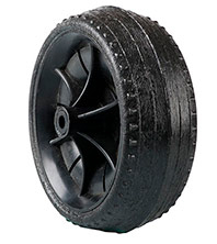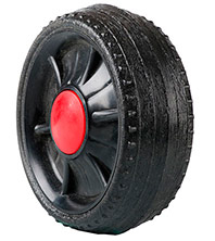 Колесо литое 175-62/10-75 для тележек. Состоит из пластикового обода, шинки из пластиката шириной 62 мм, износостойкой полиамидной втулки скольжения диаметром 10 мм. и цветной крышки, закрывающей ось. Устанавливаются на тележку грузоподьёмностью 30-65 кг.